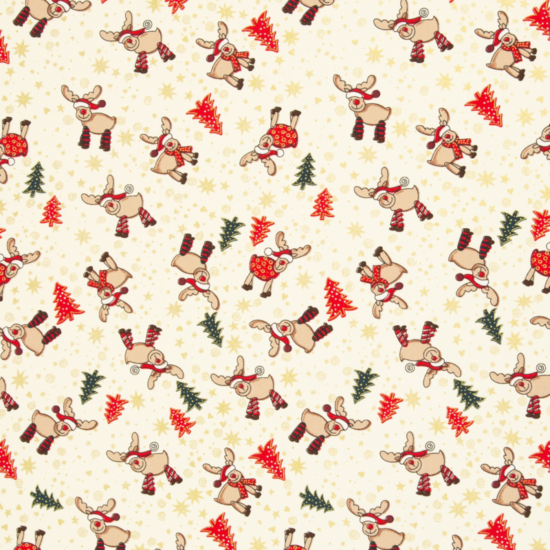 Swafing - Katoen Print Kerst - Rudolf -Gold Foil - Off White