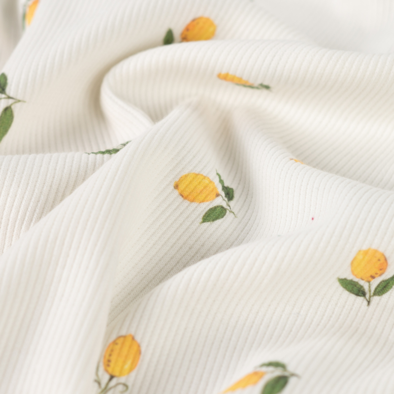 Tricot Rib - Lemons - Ecru