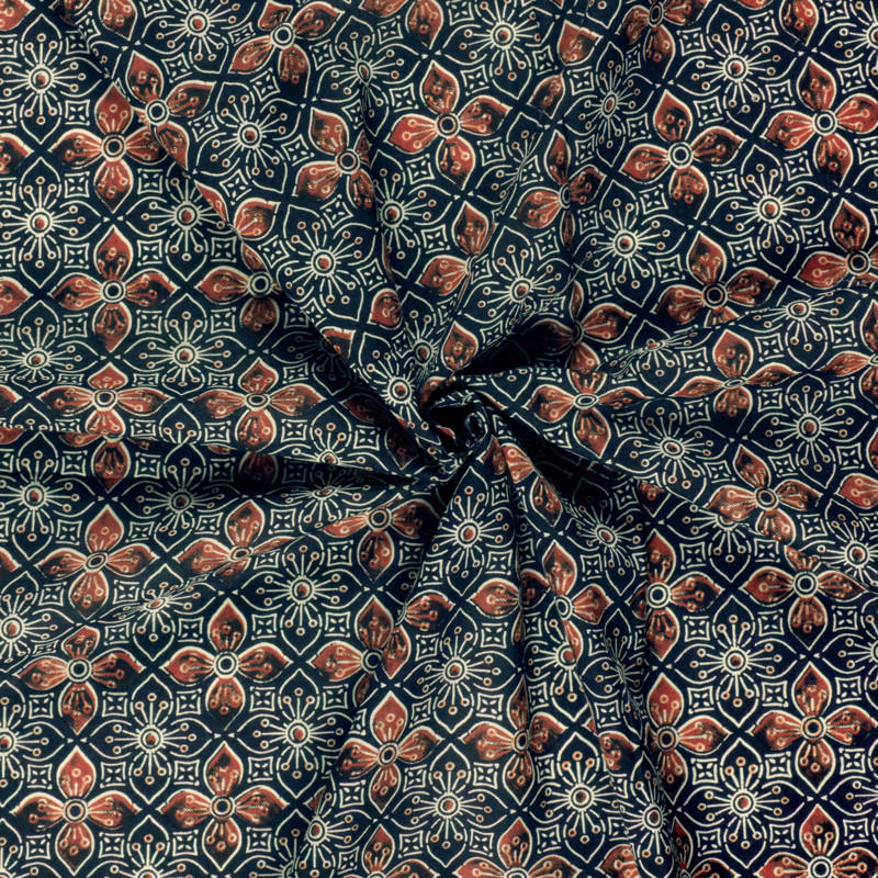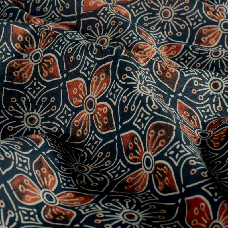 katoen Print - Voile - Batik - Flower - Navy