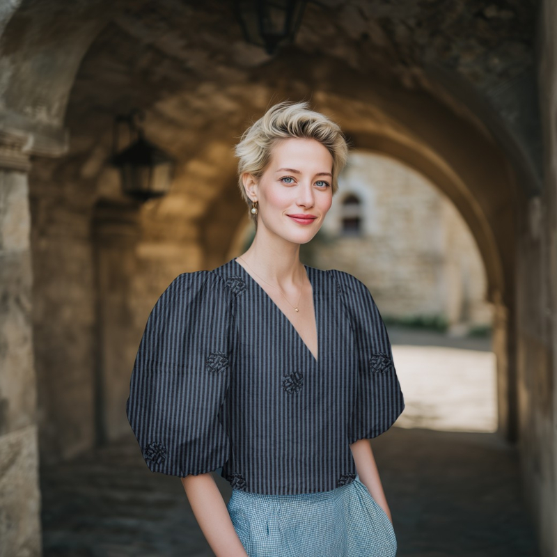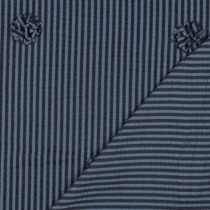 Verhees - Viscose - Stripes - 3D Flowers - Indigo