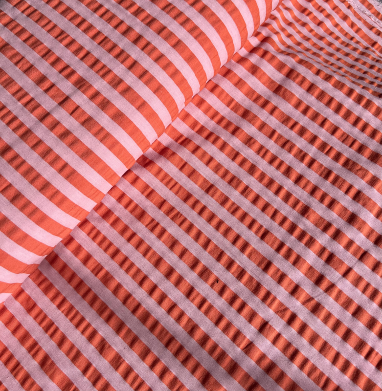 Katoen Seersucker - Stripes - Rose Tangerine