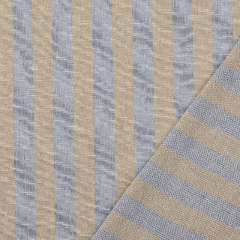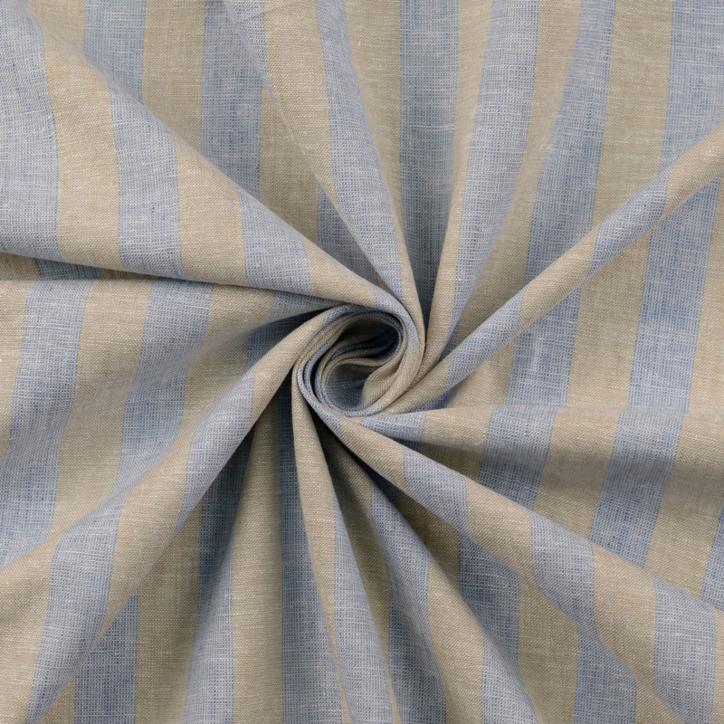 Linnen Katoen - Stripe - Natural Light Blue