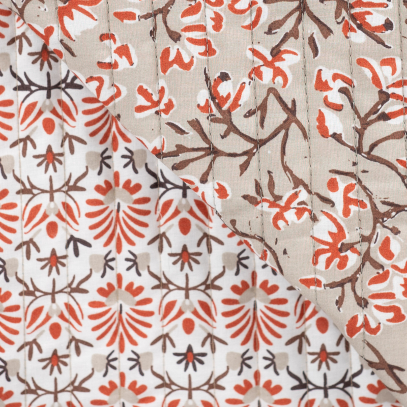 Stepped - Quilted - Flowers - Double Sided - Beige & Orange